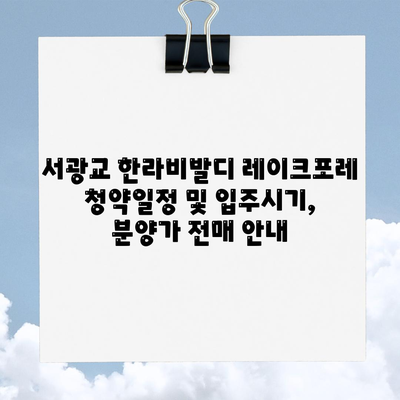 💡 서광교 한라비발디 레이크포레의 청약 일정과 자세한 정보를 알아보세요. 💡