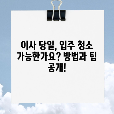 이사 당일, 입주 청소 가능한가요? 방법과 팁 공개!