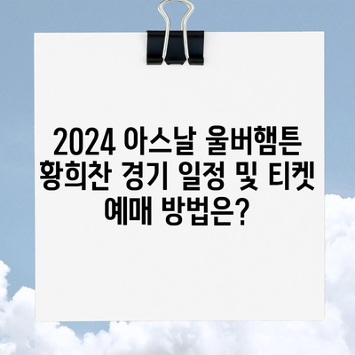 2024 아스날 울버햄튼 황희찬 경기 일정 및 티켓 예매 방법은?
