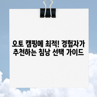 오토 캠핑에서 적합한 침낭 선택은 여러분의 야외 경험을 크게 향상시킬 수 있습니다. 적절한 형태와 소재 선택은 물론 계절에 알맞은 침낭을 갖추는 것도 필수적입니다. 3계절용 사각 침낭을 선택하고 여기에 추가적인 용품을 고려하는 것은 여러분의 캠핑 경험을 더욱 풍부하게 만들어 줄 것입니다.