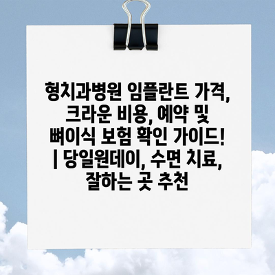 형치과병원 임플란트 가격, 크라운 비용, 예약 및 뼈이식 보험 확인 설명서! | 당일원데이, 수면 치료, 잘하는 곳 추천 에 대해 자주 묻는 질문 TOP 5