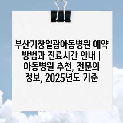 부산기장일광아동병원 예약 방법과 진료시간 공지 | 아동병원 추천, 전연락 정보, 2025년도 기준 에 대해 자주 묻는 질문 TOP 5