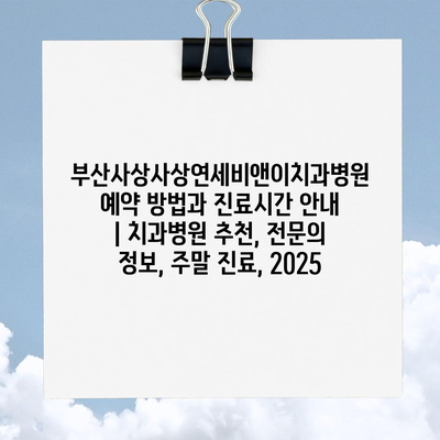 부산사상사상연세비앤이치과병원 예약 방법과 진료시간 공지 | 치과병원 추천, 전연락 정보, 주말 진료, 2025 에 대해 자주 묻는 질문 TOP 5
