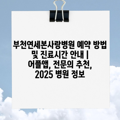 ✅ 부천연세본사랑병원의 진료시간과 예약 방법을 자세히 알아보세요.