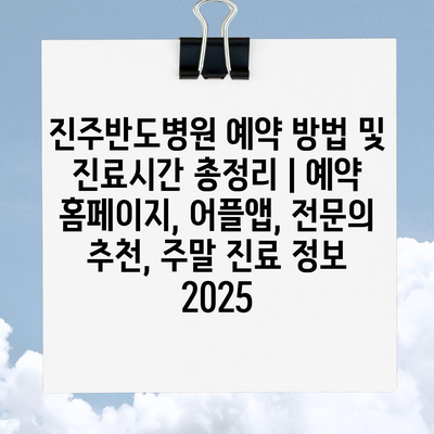 진주반도병원 예약 방법 및 진료시간 총정리 | 예약 홈페이지, 어플앱, 전연락 추천, 주말 진료 정보 2025