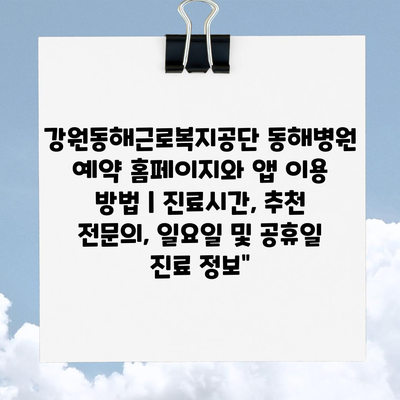 강원동해근로복지공단 동해병원 예약 홈페이지와 앱 이용 방법 | 진료시간, 추천 전연락, 일요일 및 공휴일 진료 정보에 대해 자주 묻는 질문 TOP 5