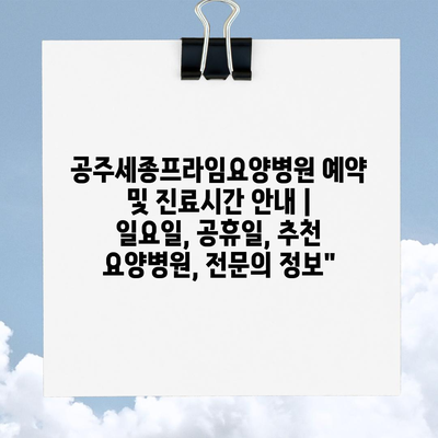 공주세종프라임요양병원 예약 및 진료시간 공지 | 일요일, 공휴일, 추천 요양병원, 전연락 정보” 에 대해 자주 묻는 질문 TOP 5