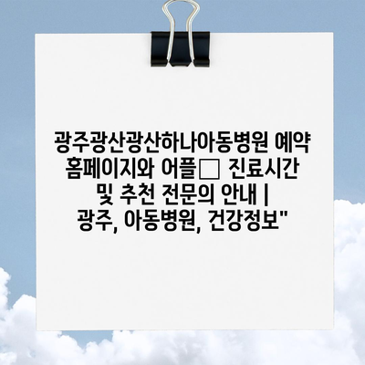✅ 광주광산아동병원의 진료시간과 예약 방법을 쉽게 확인해 보세요!