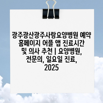 광주광산광주사랑요양병원 예약 홈페이지 어플 앱 진료시간 및 의사 추천 | 요양병원, 전연락, 일요일 진료, 2025 에 대해 자주 묻는 질문 TOP 5