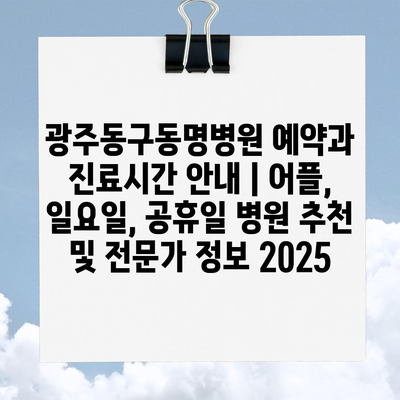 ✅ 광주동구동명병원의 예약 방법과 진료 시간을 자세히 알아보세요.