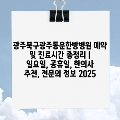 광주북구광주동운한방병원 예약 및 진료시간 총정리 | 일요일, 공휴일, 한의사 추천, 전연락 정보 2025 에 대해 자주 묻는 질문 TOP 5