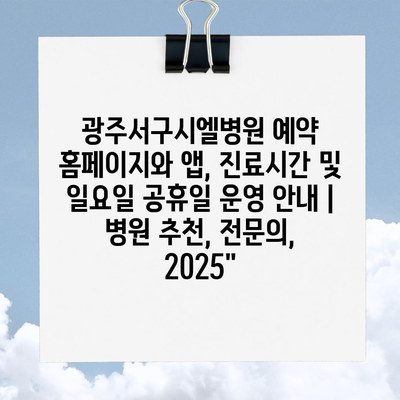 ✅ 광주서구시엘병원의 진료시간과 예약 방법을 지금 바로 확인해 보세요.