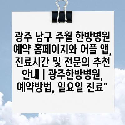 ✅ 광주 남구 주월 한방병원 예약 방법을 자세히 알아보세요.