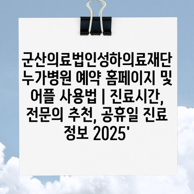 ✅ 군산의료법인 성하의료재단 누가병원 예약 시스템을 지금 확인해보세요!