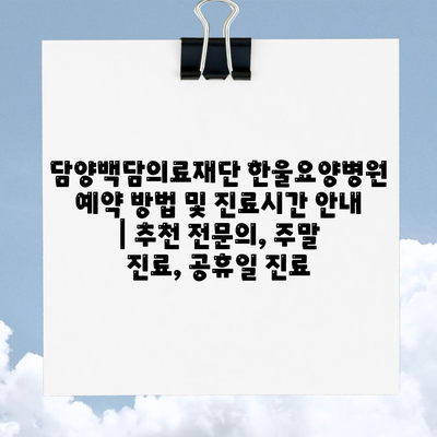 담양백담의료재단 한울요양병원 예약 방법 및 진료시간 공지 | 추천 전연락, 주말 진료, 공휴일 진료에 대해 자주 묻는 질문 TOP 5