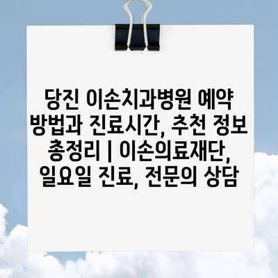 당진 이손치과병원 예약 방법과 진료시간, 추천 정보 총정리 | 이손의료재단, 일요일 진료, 전연락 상담 에 대해 자주 묻는 질문 TOP 5