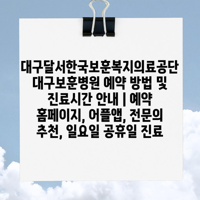 대구달서한국보훈복지의료공단 대구보훈병원 예약 방법 및 진료시간 공지 | 예약 홈페이지, 어플앱, 전연락 추천, 일요일 공휴일 진료 에 대해 자주 묻는 질문 TOP 5