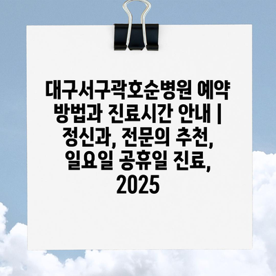 대구서구곽호순병원 예약 방법과 진료시간 공지 | 정신과, 전연락 추천, 일요일 공휴일 진료, 2025 에 대해 자주 묻는 질문 TOP 5