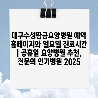 대구수성황금요양병원 예약 홈페이지와 일요일 진료시간 | 공휴일 요양병원 추천, 전연락 인기병원 2025 에 대해 자주 묻는 질문 TOP 5