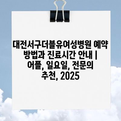 ✅ 대전서구더블유여성병원의 예약 방법과 진료 시간을 쉽게 알아보세요.