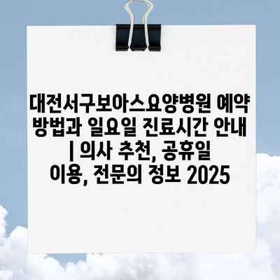 대전서구보아스요양병원 예약 방법과 일요일 진료시간 공지 | 의사 추천, 공휴일 이용, 전연락 정보 2025 에 대해 자주 묻는 질문 TOP 5