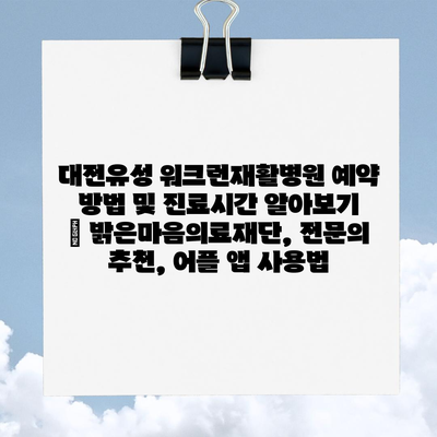 ✅ 대전유성 워크런재활병원의 예약 방법과 진료 시간을 간편하게 확인해 보세요.