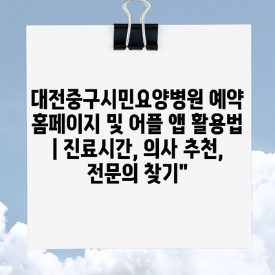 대전중구시민요양병원 예약 홈페이지 및 어플 앱 활용법 | 진료시간, 의사 추천, 전연락 찾기에 대해 자주 묻는 질문 TOP 5