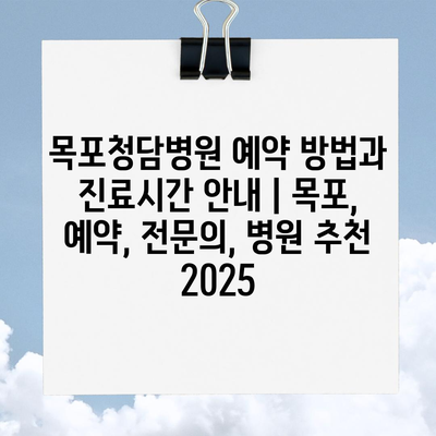 목포청담병원 예약 방법과 진료시간 공지 | 목포, 예약, 전연락, 병원 추천 2025에 대해 자주 묻는 질문 TOP 5