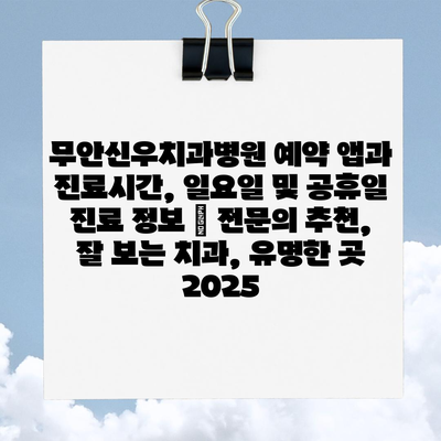 무안신우치과병원 예약 앱과 진료시간, 일요일 및 공휴일 진료 정보 | 전연락 추천, 잘 보는 치과, 유명한 곳 2025에 대해 알려제공합니다.