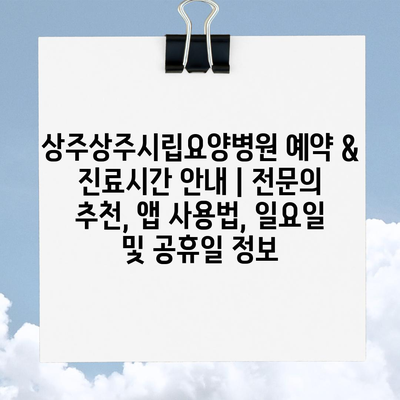 상주상주시립요양병원 예약 & 진료시간 안내 | 전문의 추천, 앱 사용법, 일요일 및 공휴일 정보