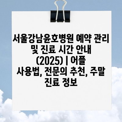 서울강남윤호병원 예약 관리 및 진료 시간 공지 (2025) | 어플 사용법, 전연락 추천, 주말 진료 정보