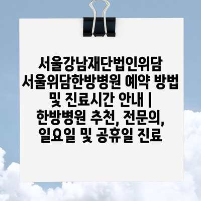 서울강남재단법인위담 서울위담한방병원 예약 방법 및 진료시간 공지 | 한방병원 추천, 전연락, 일요일 및 공휴일 진료 에 대해 자주 묻는 질문 TOP 5