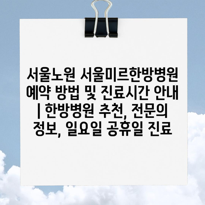 서울노원 서울미르한방병원 예약 방법 및 진료시간 공지 | 한방병원 추천, 전연락 정보, 일요일 공휴일 진료 에 대해 자주 묻는 질문 TOP 5