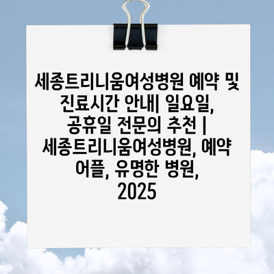 세종트리니움여성병원 예약 및 진료시간 공지| 일요일, 공휴일 전연락 추천 | 세종트리니움여성병원, 예약 어플, 유명한 병원, 2025