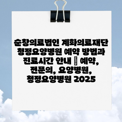 순창의료법인 계화의료재단 청정요양병원 예약 방법과 진료시간 안내 | 예약, 전문의, 요양병원, 청정요양병원 2025