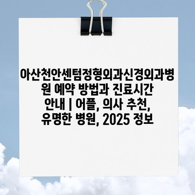 ✅ 아산천안센텀정형외과병원 예약 방법을 자세히 알아보세요.