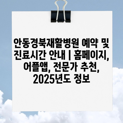 안동경북재활병원 예약 및 진료시간 공지 | 홈페이지, 어플앱, 전문가 추천, 2025년도 정보 에 대해 자주 묻는 질문 TOP 5