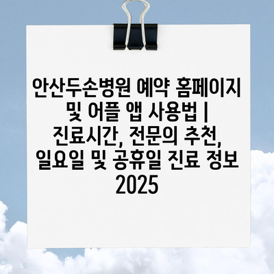 안산두손병원 예약 홈페이지 및 어플 앱 사용법 | 진료시간, 전연락 추천, 일요일 및 공휴일 진료 정보 2025에 대해 알아보겠습니다.