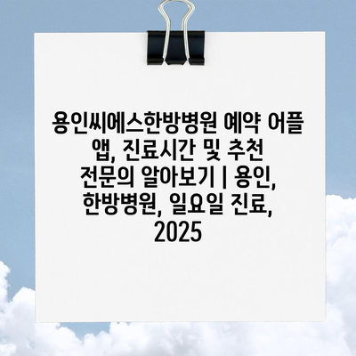 ✅ 용인씨에스한방병원의 진료시간과 예약 방법을 알아보세요.