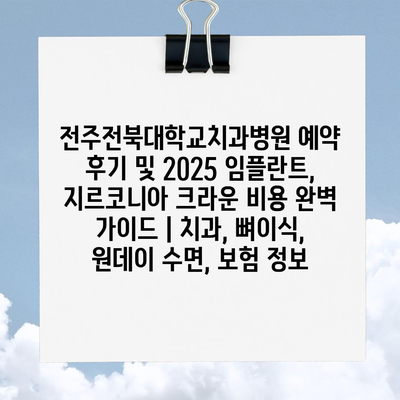 전주전북대학교치과병원 예약 후기 및 2025 임플란트, 지르코니아 크라운 비용 완벽 설명서입니다.