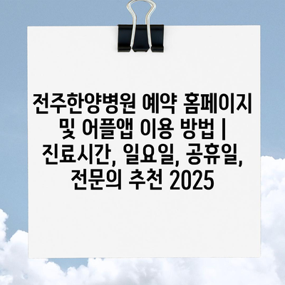 ✅ 전주한양병원의 예약 방법과 진료시간을 알아보세요!