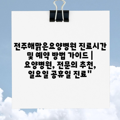 ✅ 전주해맑은요양병원의 상세 진료시간과 예약 방법을 알아보세요.