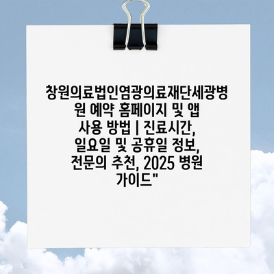 창원의료법인염광의료재단세광병원 예약 홈페이지 및 앱 사용 방법 | 진료시간, 일요일 및 공휴일 정보, 전연락 추천, 2025 병원 설명서