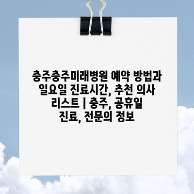 충주충주미래병원 예약 방법과 일요일 진료시간, 추천 의사 리스트 | 충주, 공휴일 진료, 전연락 정보에 대해 자주 묻는 질문 TOP 5