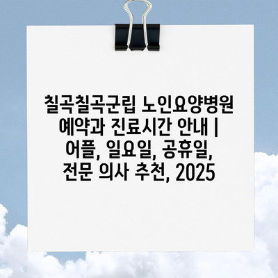 ✅ 칠곡군립 노인요양병원의 예약 방법과 진료 시간을 쉽게 알아보세요.