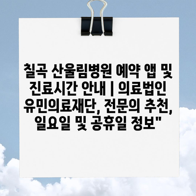 ✅ 칠곡 산울림병원의 진료시간과 예약 방법을 알아보세요.