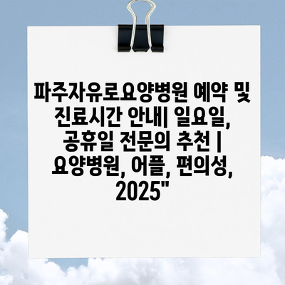 파주자유로요양병원 예약 및 진료시간 공지| 일요일, 공휴일 전연락 추천 | 요양병원, 어플, 편의성, 2025″ 에 대해 자주 묻는 질문 TOP 5