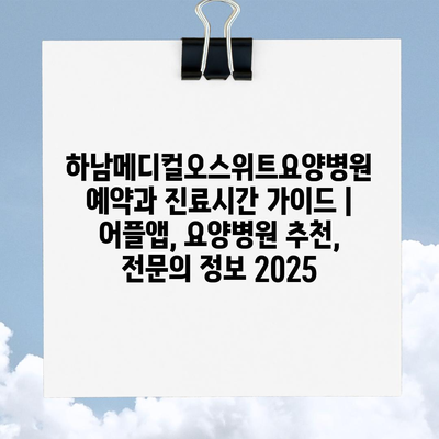 하남메디컬오스위트요양병원 예약과 진료시간 설명서 | 어플앱, 요양병원 추천, 전연락 정보 2025 에 대해 자주 묻는 질문 TOP 5