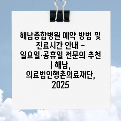 해남종합병원 예약 방법 및 진료시간 공지 – 일요일·공휴일 전연락 추천 | 해남, 의료법인행촌의료재단, 2025 에 대해 자주 묻는 질문 TOP 5