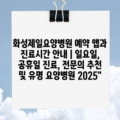 화성제일요양병원 예약 앱과 진료시간 공지 | 일요일, 공휴일 진료, 전연락 추천 및 유명 요양병원 2025″ 에 대해 자주 묻는 질문 TOP 5